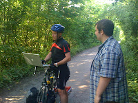 I've uploaded some pictures from the last of the filming. Cheers guys you were fantastic as usual and we had a scream....literally I fell off the rollers and squashed my 'riding tackle' against the crossbar of my bike. You wouldn't understand girls but it took a couple of seconds before the sickly feeling slowly rose from the pit of my stomach...and lower. It drove the tears from my eyes and I had the up most respect for anything within a foot of my nether regions for the next half hour. I don't suppose it helped that my Lycra pants had herded my testis into a coral like area making it easier to 'round them up' so to speak. Poor little mites they were rolling round like a pair of Chinese calmimg balls in the hands of a stressed out city banker.